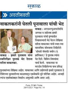 - She has authored two books i.e “JACKPOT” – biography of her life and “PUNYASMARAN” – memories of Pune city. She has also sponsored “Marathi Sangeet Natak (Naman Natvara)” in the memory of “Late Shri Shankarrao Wakalkar”.